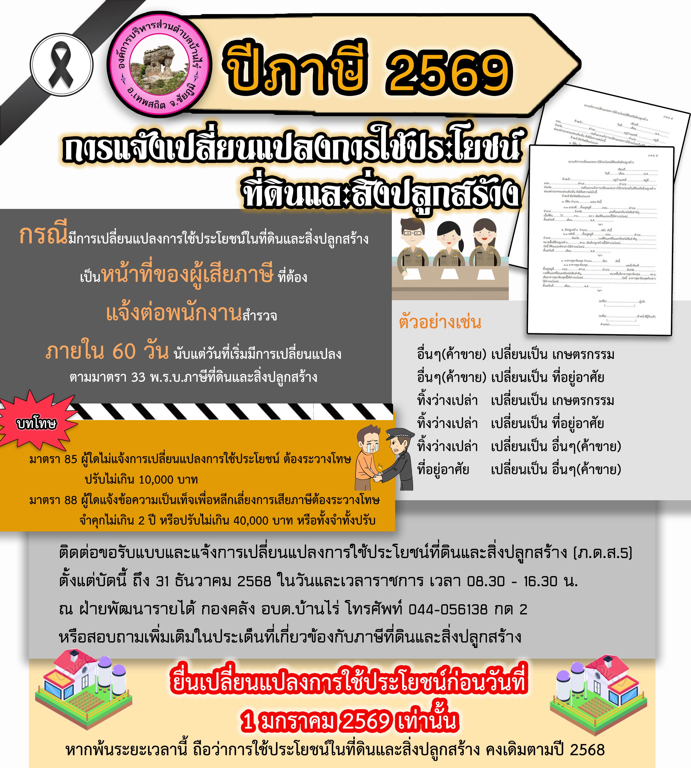 การแจ้งเปลี่ยนแปลงการใช้ประโยชน์ที่ดินและสิ่งปลูกสร้าง ประจำปีงบประมาณ 2569