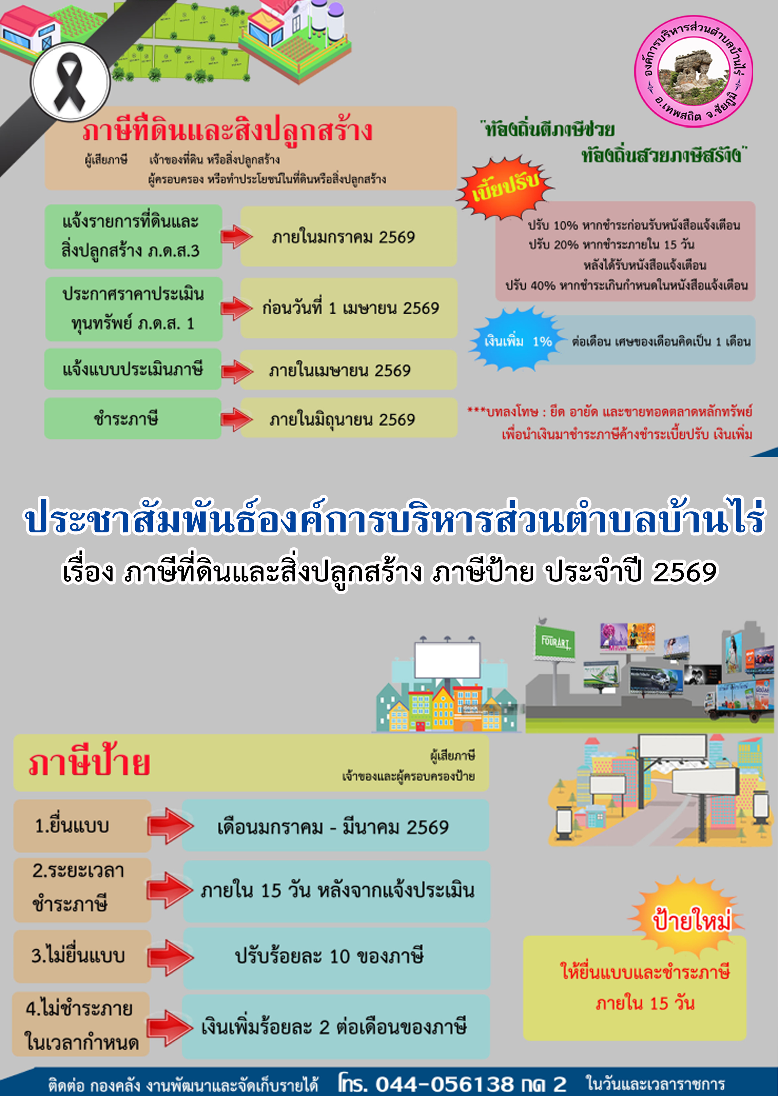 ประชาสัมพันธ์เรื่องภาษีป้าย ภาษีที่ดินและสิ่งปลูกสร้างประจำปี 2569 |
